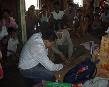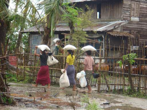 Viele Aktivitäten im Rahmen der Nothilfe für die Zyklon Opfer in Birma Mit unseren und anderen Geldern konnten unsere Freunde vor Ort in den letzten Wochen eine Menge Hilfe leisten. Wir wurden in dieser Zeit mit 18 Berichten und Fotos per E-Mail von ihnen immer auf dem neuesten Stand gehalten. Es wurden zahlreiche Dörfer besucht in denen Menschen medizinisch versorgt wurden, Essen bekamen und auch die Schulen wurden mit neuen Büchern ausgestattet. Wir von Terra Humana sind sehr froh, dass unsere Hilfen so gut angekommen sind bzw. immer noch ankommen. Der Zyklon ist lange vorbei aber die Folgen werden noch länger nachwirken und wir fühlen uns weiterhin verpflichtet, den Menschen dort zu helfen. Nachfolgend ein paar Eindrücke der letzten Einsätze: