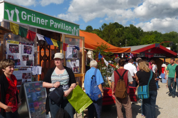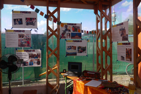 Auftritt auf dem Tollwood in München Während des vierwöchigen und sehr gut besuchten Tollwood Festivals und Kunsthandwerker Marktes in München präsentierten wir für zwei Tage die Projekte unseres Vereins. Dafür wurde uns kostenlos der Grüne Pavillon überlassen, den wir mit Projektpostern, Gebetsfahnen,
