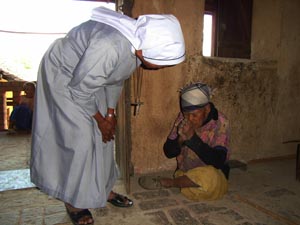 Marivic Spiecker spricht mit einer Patientin, die vor zwei Jahren erblindete
